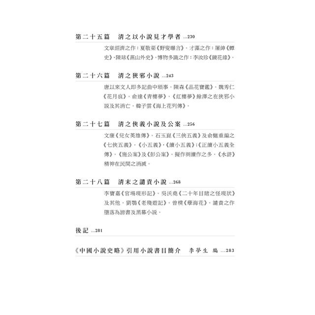 李寶嘉《官場現形記》。吳沃堯《二十年目睹之怪現狀》及其他。劉鶚《老殘遊記》。曾樸《孽海花》。譴責之作墮落為謗書及黑幕小說。 後記...281