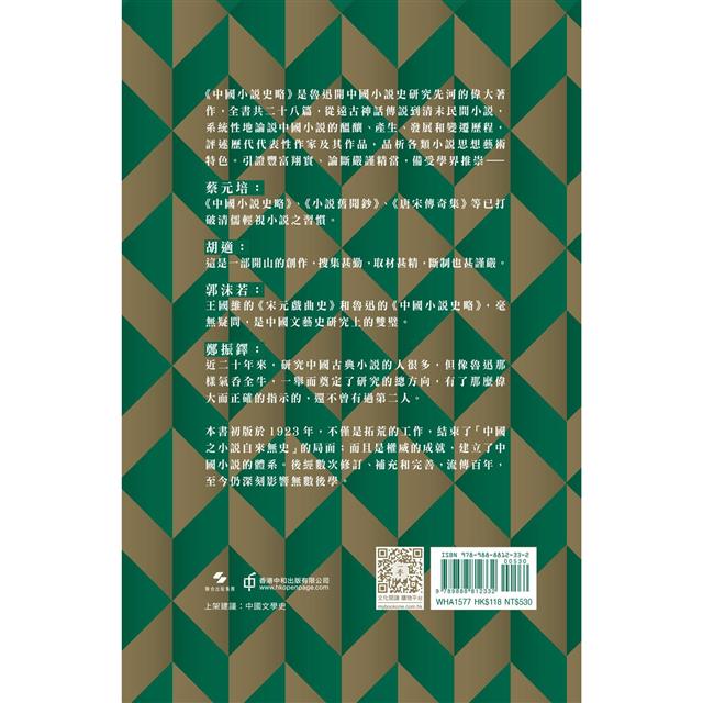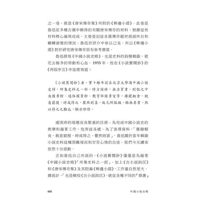 本書初版於1923年,不僅是拓荒的工作,結束了「中國之小說自來無史」的局面;而且是權威的成就,建立了中國小說的體系。後經數次修訂、補充和完善,流傳百年,至今仍深刻影響無數後學。