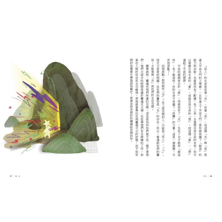人性的心情,會依據外在的人、事、物而起伏;而靈魂的心情,則是受外在空間環境的影響,造成頻率的高低。所以,處理靈魂心情的方法,就在大自然。只要走進大自然,你的「靈魂」自動會啟動方程式,去運轉、調整祂本身該減的、該加的一切。