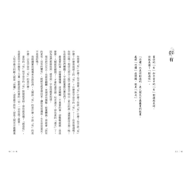 當你的「有」和宇宙中的「有」對接起來時,那你就具備了「創造性」,也就是你手中握有了力量,能創造你所需的一切,一切你說了就算!