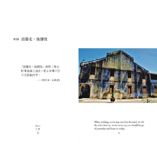 透過這些在工作、生活、旅行等生命不同時刻裡的吉光片羽,以及精簡、智慧的文字,讓視覺的盛宴與文字的智慧之美長存於心中,描繪出屬於自己的心靈風景,形成更強大的愛的力量。
