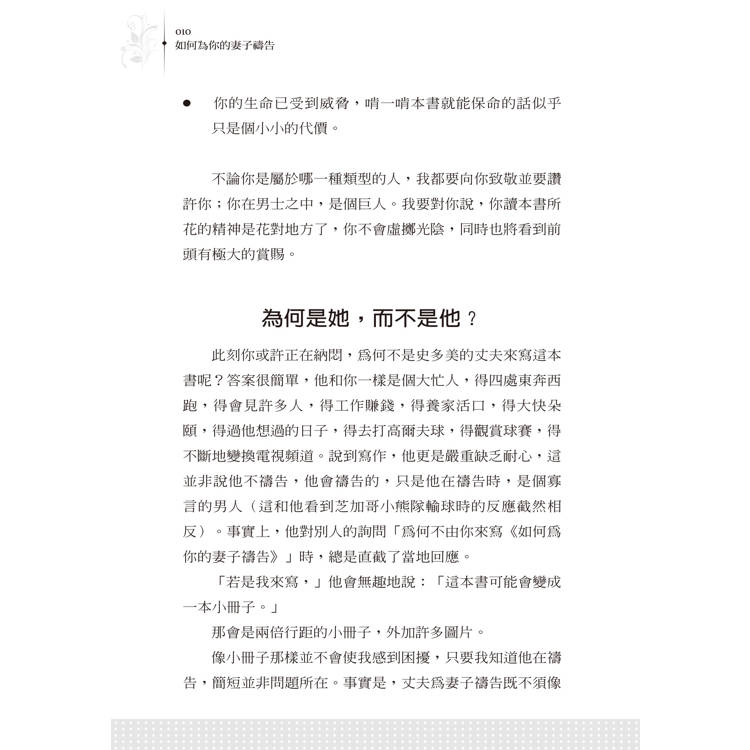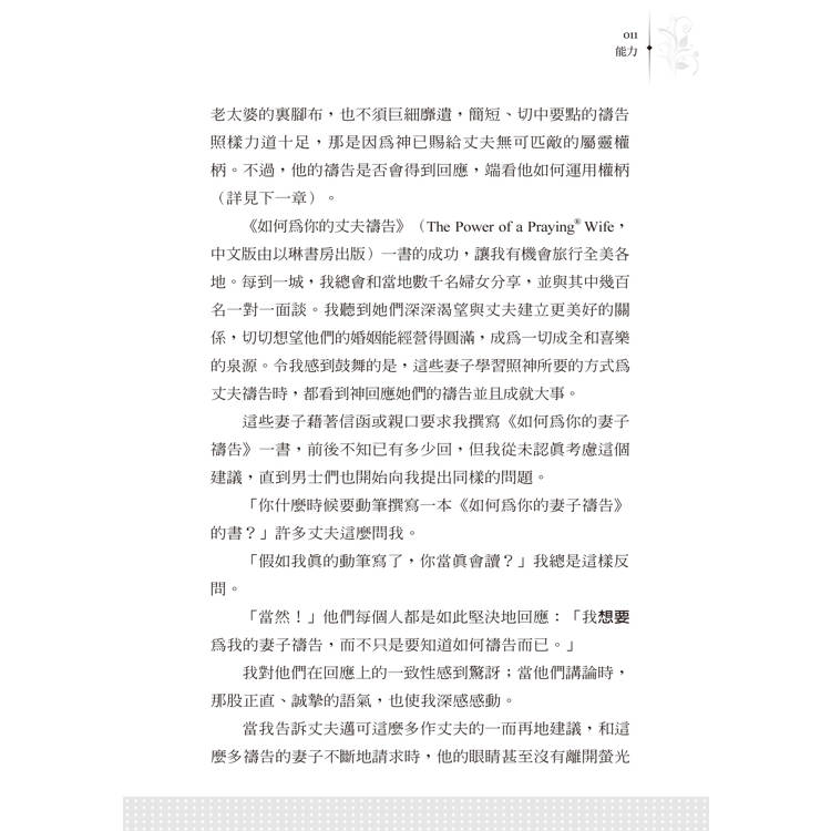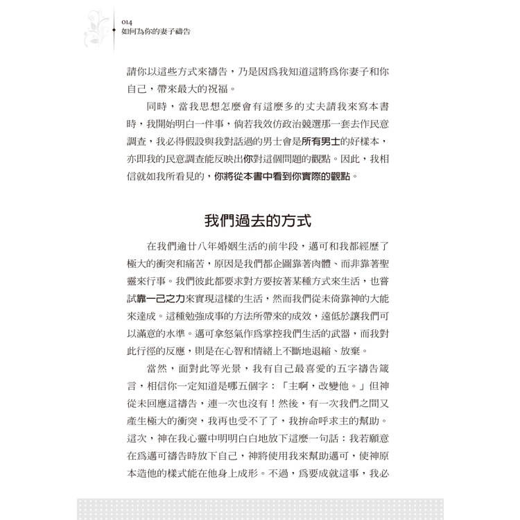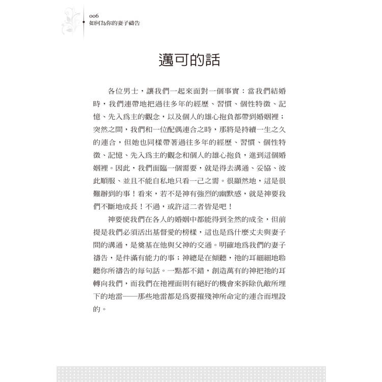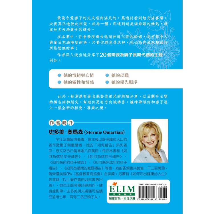 作者深入淺出地分享了二十個需要為妻子長期代禱的主題,諸如: