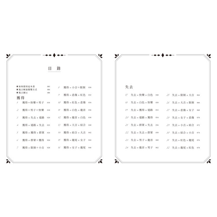 5. 接著看右頁的主題目錄,你可以找到和你問題最接近的範疇(如感情、健康、人際、旅程等),找到大地給你的具體答案。