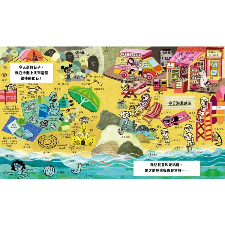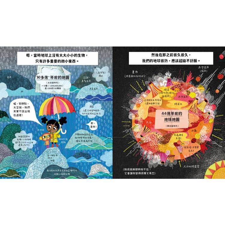 ◆我本來就很喜歡第一本書,沒想到作者又帶來另一本如同冰淇淋聖代般、讓大腦極度滿足的繪本,上面還撒滿各種配料。在這個新故事中,瑪莎以「時間」為概念,帶領讀者踏上一段回到過去的旅程,從近代歷史,到冰河時期、侏羅紀、三疊紀、古生代⋯⋯,然後她快速前進到未來,地球暖化後的未來。作者的創造力令人瞠目結舌,作為成人,當你一頁一頁往下翻閱,花點時間欣賞創作這部續作所付出的工作量、技巧和想像力,這真的太棒了!──英國童書評論網 The Kids Book Curator