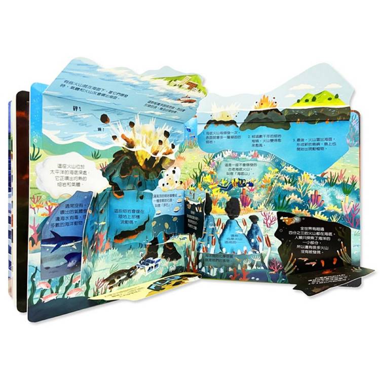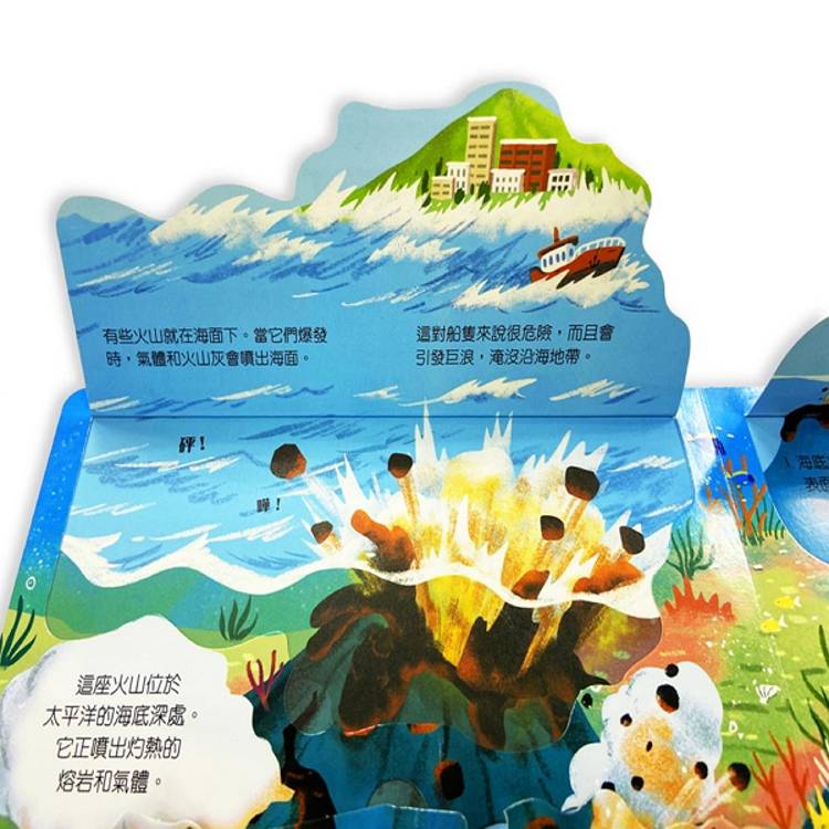 ★翻頁設計,統整自然概念:打開平時看不見的地殼、火山內部,串聯科學知識與激發好奇心。