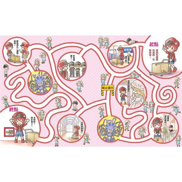 此外,故事中還有一個可愛又好玩的小遊戲,讓親子都可以與工作細胞一同冒險!快來幫助冒失又路痴的紅血球,帶她走出迷宮,找到通往肺的道路!