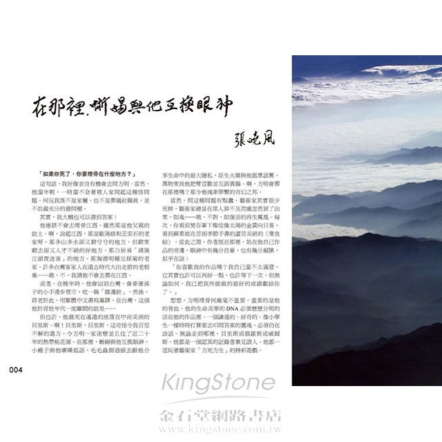 想想,方明埋骨何處毫不重要,重要的是他的骨血,他的生命美學的 DNA 必須歷歷分明的活在他的作品裡。一個謙遜的、好奇的、像小學生一樣時時打算要去叩問答案的靈魂,必須仍在說話。無論走到哪裡,貝里斯或俄羅斯或威爾斯,他都是一個認真的記錄者兼見證人。他都一逕玩著藝術家「方死方生」的精彩遊戲。