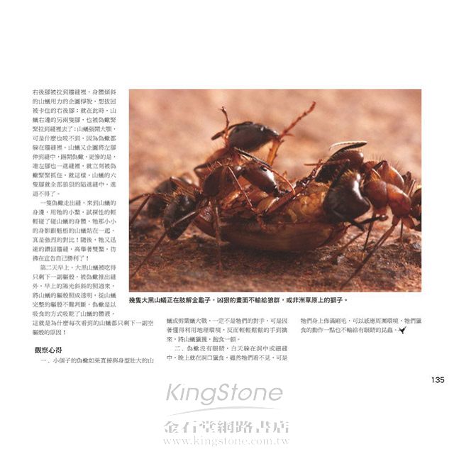 本書收錄的兩百餘幅照片,選自作者五萬餘幅生態攝影作品,彌足珍貴,舉世難得一見。所有作品傳達的是造物的創造與偉大,無論一足一鬚、一翼一肢,都訴說造物的奇妙,也提醒人類必須謙卑自省、尊重生命。
