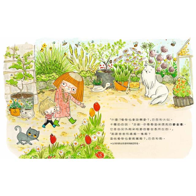 ▌推薦這套有趣又生活化的親子繪本,藉由熱愛園藝的奶奶,帶著孫子巴西利從自家花園中認識了植物如何戀愛、生殖、排泄,非常適合幼稚園到低年級的孩子與家長共讀共做。畫風溫馨童趣,書末還有補充相關知識,爸爸媽媽們不怕被問倒,另可掃描下載學習小冊,方便觀察紀錄。即使家中沒有庭院,種幾盆廚房實用的九層塔、薄荷葉,都可使用阡插法讓它生生不息。對成長中的小朋友來說,寓教於樂是一大生活享受。 ──楊華玲(南投縣炎峰國小教師)