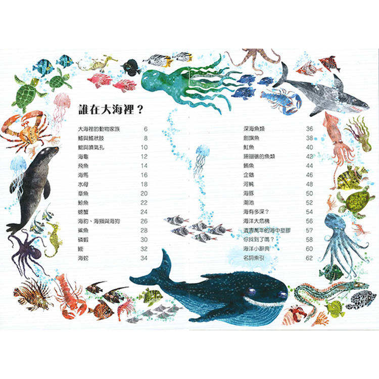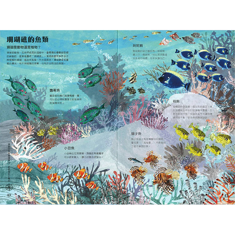 讓我們一起翻開這本海洋大書,跟著精美的插圖和有趣的知識,徜徉在神奇的海洋世界吧!