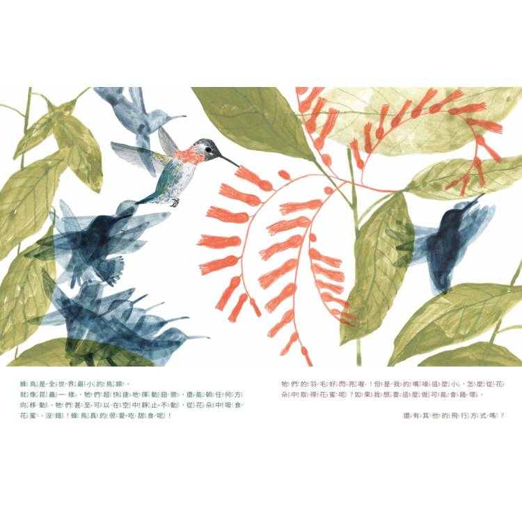 透過鳥朋友一一介紹各種鳥類的飛行方式,