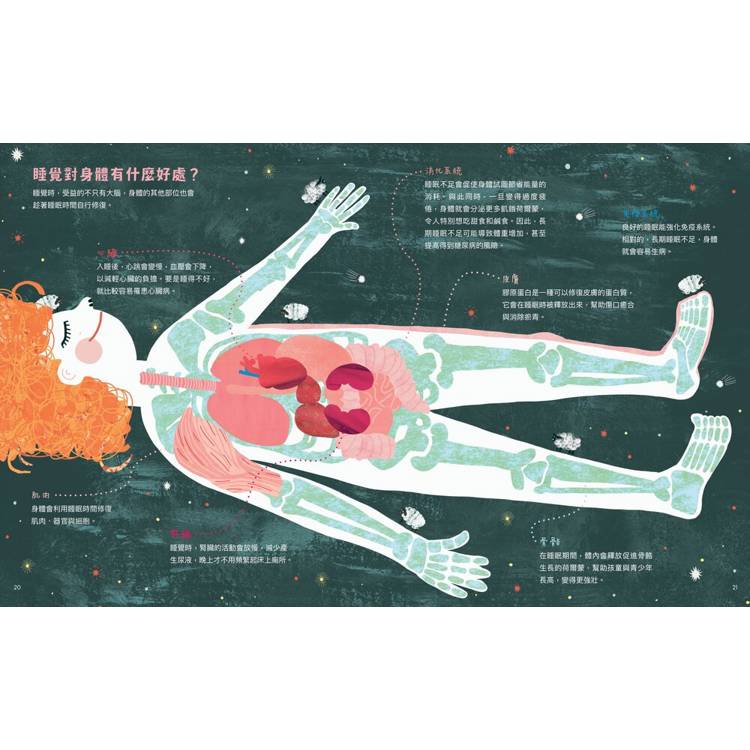 你以為睡覺就只是在晚上躺上床、蓋上棉被,這麼簡單嗎?不!睡覺其實是一門很深奧又有趣的學問喔!它跟生物習性、荷爾蒙、白天的記憶與情緒,甚至跟全身各個器官都有關係。翻開這本書,我們不只能獲得超豐富的新知識,也能從根本了解如何「好好睡一覺」──最適合獻給所有愛睡覺或不愛睡覺的孩子,以及總是睡不飽的大人!