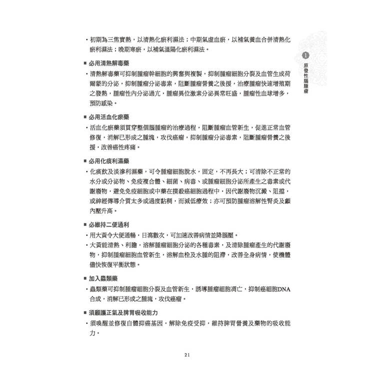 傳統中醫治癌書籍,只見依證型表現給予處方,但腫瘤各階段虛實混雜,令人難以分辨及入手。本書提出核心病機的主張,從辨病+辨證+辨治療處境著手,提供完整的治癌策略。