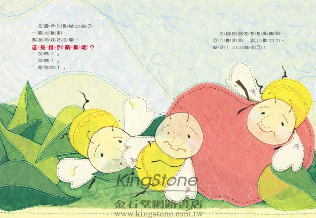 這個故事雖然簡單卻很有意義,原本是好朋友的三隻小蜜蜂,都想要將美麗的花、葉子、蘋果據為己有。這三個好朋友因為自私與爭奪,變得非常不快樂,直到他們了解其實東西不一定要變成是自己的,和大家一起分享,大家都開心,自己也會更快樂!