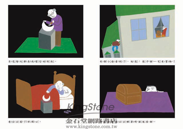 不少繪本以摘下月亮為主題,但《月亮不見了》卻是從月亮被偷走開始,一頁一頁展開精彩的劇情,有驚險有懸疑,也有溫馨,當你打開第一頁,就會想一口氣看到最後,故事精彩絕倫,超乎你的想像。而這個美麗的幻想故事,卻同時交織著月的盈虧、潮汐、月食等常識,讀者讀來新鮮有趣。科學常識跟幻想創作絕妙搭配,讓所有讀繪本的小朋友,把自己知道的世界擴大到宇宙,是一本處處充滿驚喜的繪本。