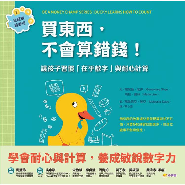 在孩子的日常生活中,「買東西」往往是最能讓他們感到興奮的情境,但也常是最容易出錯的情境。尤其是仍在熟悉加減計算的小學生,面對金額時常因緊張、急躁、缺乏確認習慣而算錯錢。本書透過冒失又可愛的鴨奇,將孩子最真實的購物錯誤轉化成清楚易懂的學習情境,回應108課綱強調的「理解金錢與數量」、「在生活情境中使用數學」的能力。