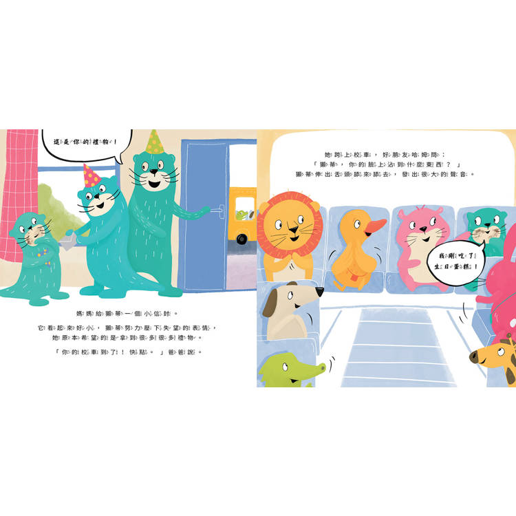 獺蒂盼了一整年的生日,終於收到爸媽送的禮物──一個裝著500元的紅包!她原本興奮地想著要買遊戲、玩具或一大堆糖果。但在上學途中看到孤兒院後,她的心裡出現了另一個念頭:把錢捐出去,幫助需要幫助的小朋友。當她和好友分享這個想法時,大家都決定一起加入,拿出各自的零用錢和存款。放學後,他們湊到孤兒院,一共準備了850元。當孩子們把錢交給院長時,院長感動得眼眶泛淚,誇他們非常貼心。那天,他們陪孤兒院的小朋友讀書、玩耍,度過了一個難忘的下午。獺蒂深深體會到,這才是她收到過最棒的生日禮物──「分享能為所有人帶來快樂!」