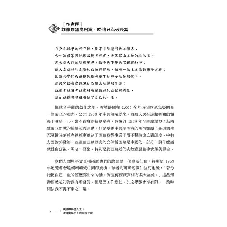 自己學識有限,加之年老智退寫不出這麼長的歷史,為了不辜負鼓勵我支持我督促我的親人朋友,年過 70 的我於是寫下了《雄雞啼鳴道人生:達賴喇嘛姐夫的雪域見證》這一本書。