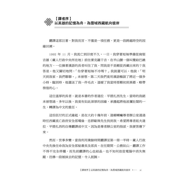 本書的中文問世,本身就是一段跨越三十年的傳奇。譯者普華才讓先生在他的序言中,分享了一段動人的往事:一九九二年,他剛流亡到印度,徬徨無助。一日,在達蘭薩拉的山路上,一位素昧平生的長者叫住了他,不僅關切他穿得單薄,隔天更與他暢談,臨別時還送了他一件毛衣。這位溫厚的長者,就是本書的作者。普華才讓先生寫道:「當時的我絕未曾想過,多年以後,我竟有如此深厚的因緣,承擔起將他波瀾壯闊的一生,轉譯為中文的重任。」這不僅是一件毛衣的溫暖,更是一段不可思議的傳承——作者達拉先生曾任安全部部長,數十年後,譯者普華才讓先生亦肩負起同樣的重任。一位前部長,翻譯另一位前部長的生命史詩,這份薪火相傳的情誼,為本書增添了無比厚重的份量。
