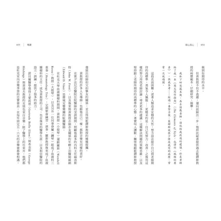 黃教授謙沖自牧,雖說避開以自己為中心的傳記體,改而描寫自己的人生導師群像,但在我看來,整本書所闡述的,其實正是他此生的價值與信念的形塑史。書名《師心我心》,其實也正強調了這個價值與理念的形塑與心心相印的過程。