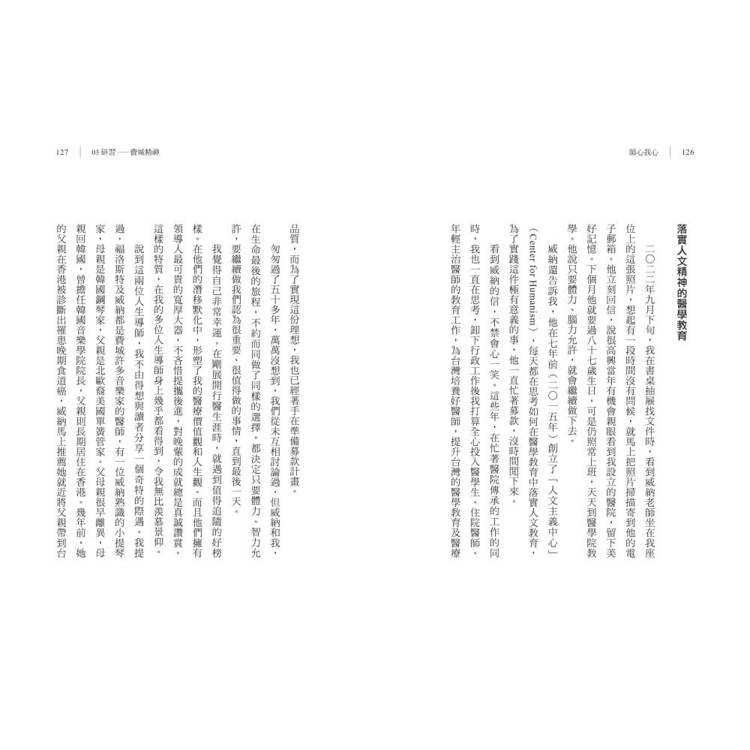 他們問診的方式、與病人溝通的態度、診斷的邏輯等,徹底顛覆了我對醫師角色的認知。我體認到,醫療服務是科學與人文兩種素養共存的展現。真正的好醫師,除了要擁有扎實深厚的醫學專業,還要能理解幽微細膩的人性,同時要從病人的角度去思考,病人要的是什麼?