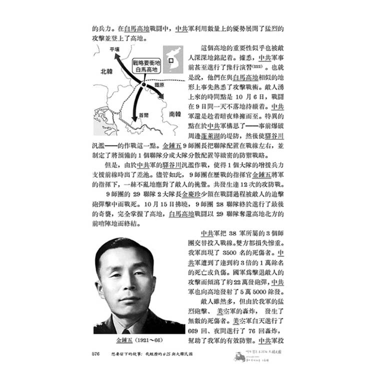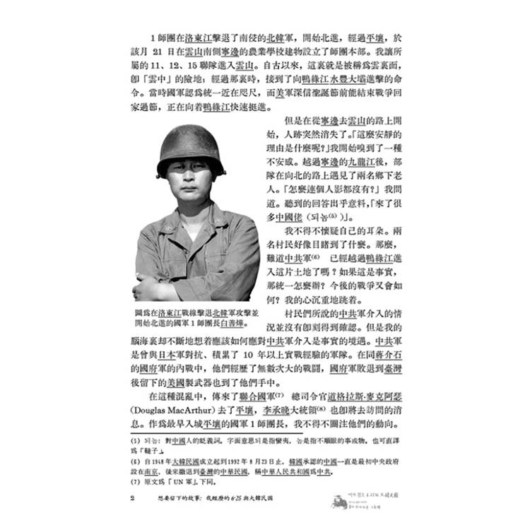 除個人回憶外,書中附有韓戰武器裝備資料,並提供中韓名詞、行政區劃、軍階及軍事編制對照表,協助讀者深入理解當時情勢。
