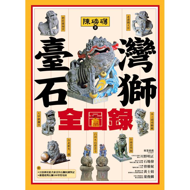 本書作者陳磅礴自二〇〇二年起,反復踏查田野現場,結合文獻史料考據,帶你讀懂臺灣石獅背後乘載的政經、族群、匠師、工藝等眉角。除了古建築中成對出現的石獅,也一併介紹活絡於村落街衢的石獅爺、石敢當獅,以及香爐、燭臺、印紐等各式生活器用的獅子。帶你看見臺灣四百年來,石獅多樣的系譜與演變。