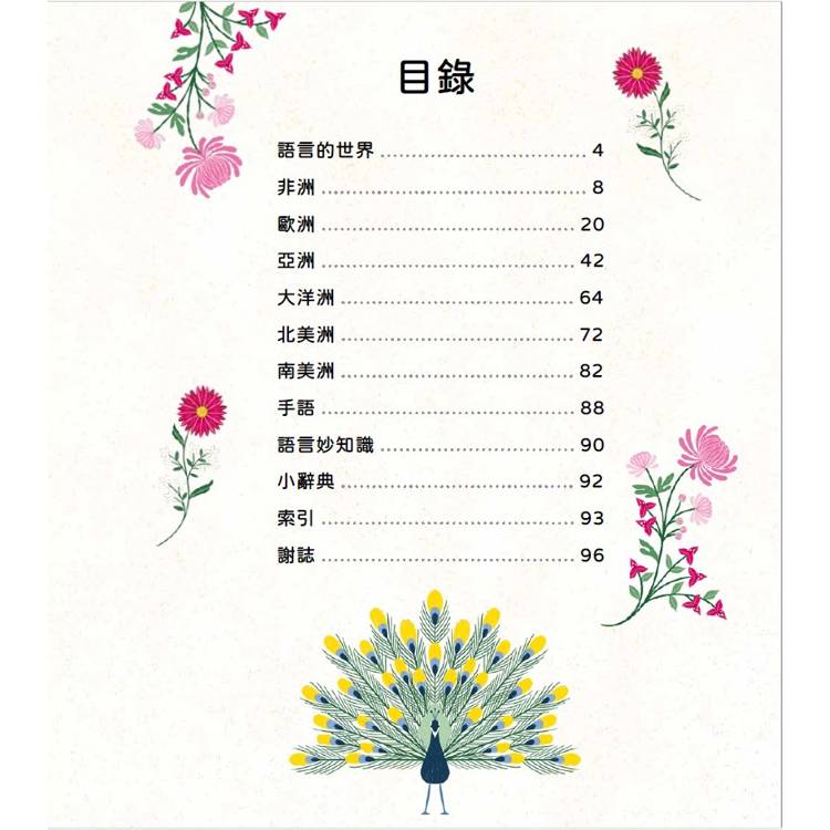 你應該可以在本書中找到你自己的語言以及其他千百種語言的介紹。你會發現有關這些語言的奇聞軼事、一些有趣諺語,還有某些語言中的某些字怎麼講。