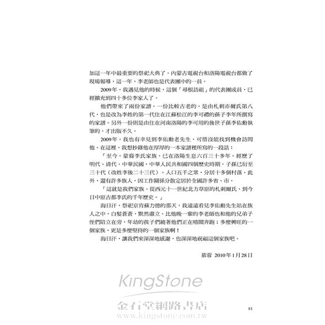 直到1989年,席慕蓉才初見父母親誕生的蒙古高原。從此魂縈夢繫,前往蒙古成為年復一年的歸鄉行腳,因為那裡始終存在著最終的孺慕,如同海洋之於萬物。