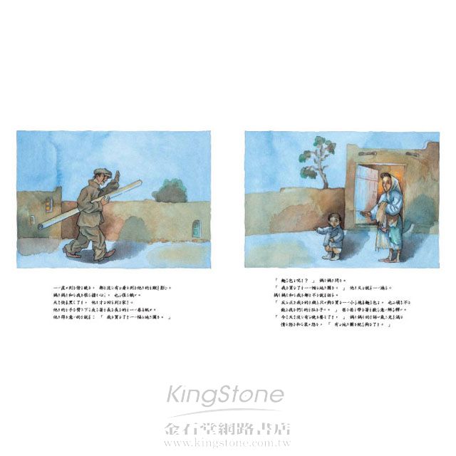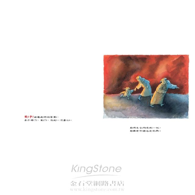畫家運用色彩和構圖的安排,對比著現實與想像,讓我們彷彿感受到角色的悲傷、無奈、困頓、驚奇、喜悅和自由。許多圖像細節適當營造出情境的氛圍,也加強了故事的真實感和說服力。俐落的繪畫風格,則藉由細微的面部表情,充分掌握畫中人物情緒,讓故事張力直接敲擊每個讀者的心,隨著小男孩由飢餓的生活感受,去想像置身在不同地方時會聽、聞、嚐、觸摸到些什麼樣的滋味和感覺,像遊戲一般享受世界的遼闊和美好。