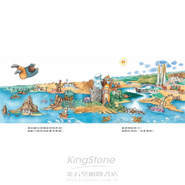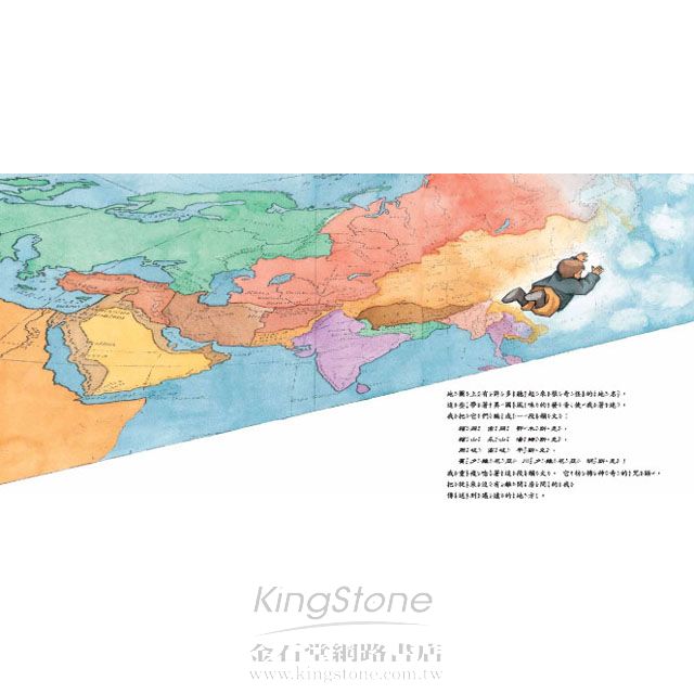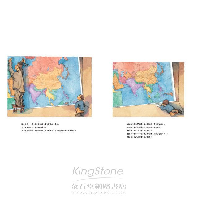 戰爭讓小男孩的家庭失去了一切,他不得不和爸媽逃難到另一個國家,過著饑寒交迫的生活,對生命似乎沒有盼望;有一天,爸爸上市場買麵包,卻帶回一幅世界地圖,飢餓的媽媽和他對爸爸好生氣。然而當地圖掛上牆面,整個生活似乎不一樣了,透過這幅地圖,開啟小男孩繽紛的想像世界,讓他得以忘卻飢餓的痛苦,悠遊於自己的想像世界。