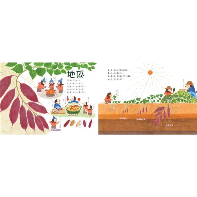1.透過清新細緻的圖畫,認識秋冬時節常見蔬菜的生長環境及其特徵。
