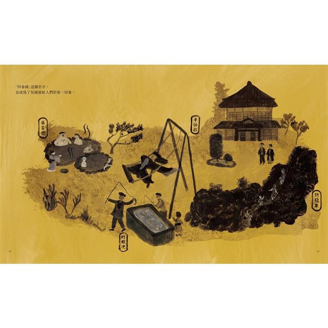 《吳園的主人》,一本充滿歷史意義臺灣人文圖畫書中,隨著文雅好讀的故事,從遙遠的百年歲月走來,可謂「眼看他起朱樓,眼看他宴賓客,眼看他樓塌了。」在吳園這一段沉浮於世的歷程、殘存的一方湖池裡,帶領著讀者慢慢發掘消失中的建築和人群記憶,尋找隱身市中的真相面貌,為臺灣一段鮮為人知的歷史「揭謎」。