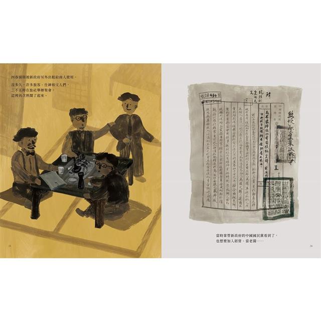 在我的上一本作品、以眷村成員的認同為題的《從烏鴉洞起飛》中,有一頁眷村生活場景的構圖,與本書軍民搬進四春園裡安頓的畫面幾乎一模一樣。何以在上一個故事中,他們是顛沛流離、終於找到新家的堅韌象徵,而到了這個故事就成了圈養禽畜、破壞環境的不速之客?
