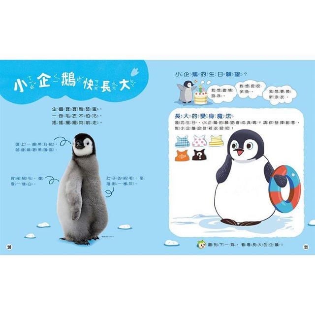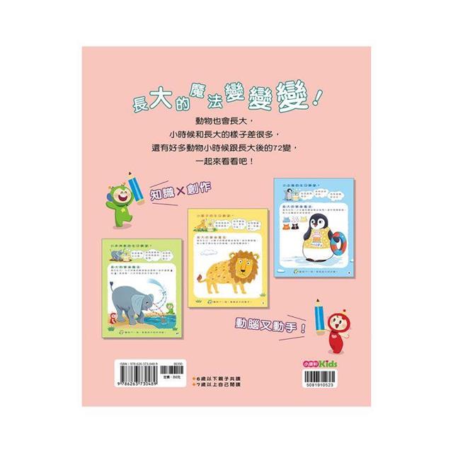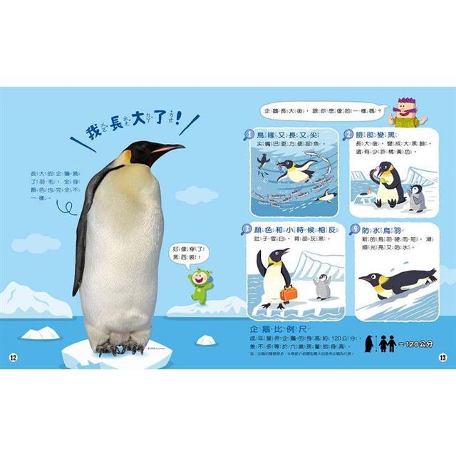 本書邀請小讀者睜大眼觀察,在遊戲中動腦腦、動動手,接力創作讓願望成真。透過清晰照片與童趣插畫圖解,幫助孩子認識幼年、成年動物的樣貌,進而了解生物的成長過程與重要特徵的功能與變化。