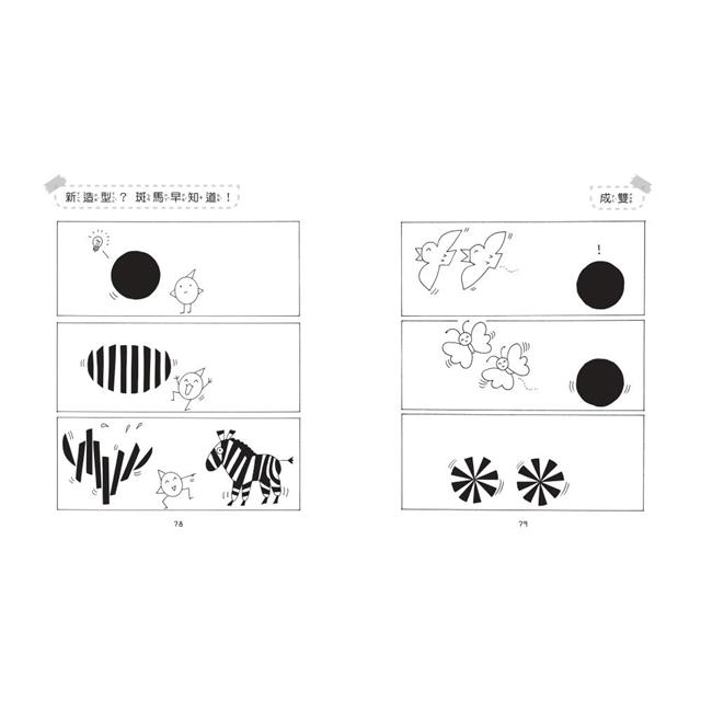 四格漫畫或短篇小說就是掌握了這樣的變數,整理出簡單而有趣的「起承轉合」,在這本書中,我以三格演出,大致上是因→轉→結,或因→果→轉的簡單形式,重點在承與轉,而不在結或果,與四格漫畫有些相似,卻又留下更多想像的空間給讀者,將焦點留在造形遊戲上。