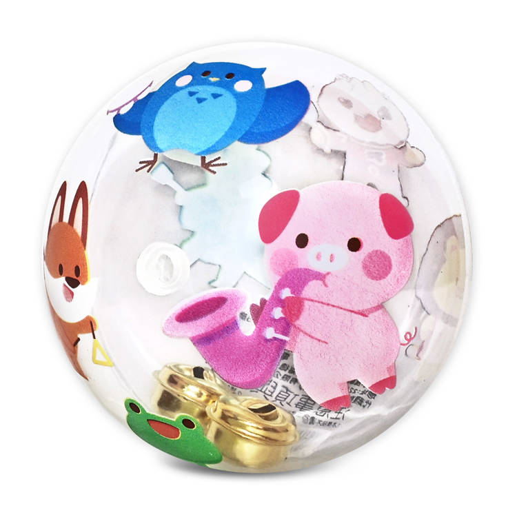 認知球除了有精美插圖可以讓孩子認知動物外,也因為具有彈性,若擲向地面能再反彈回來,裡面內含兩顆小鈴鐺會發出聲音,能讓孩子刺激聽覺發展,同時也能自得其樂!