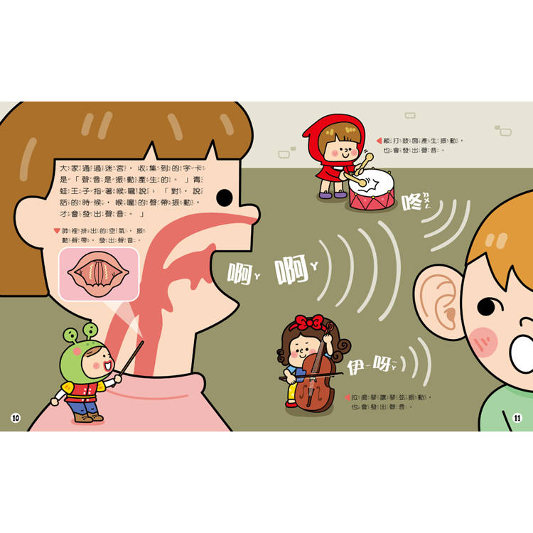 聲音王國有許多有趣的關卡,青蛙王子、白雪公主、小紅帽一起去挑戰9個關卡。