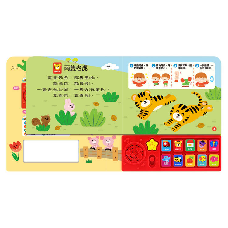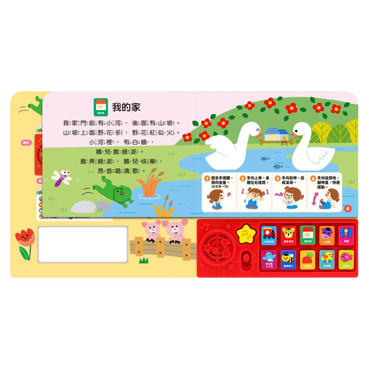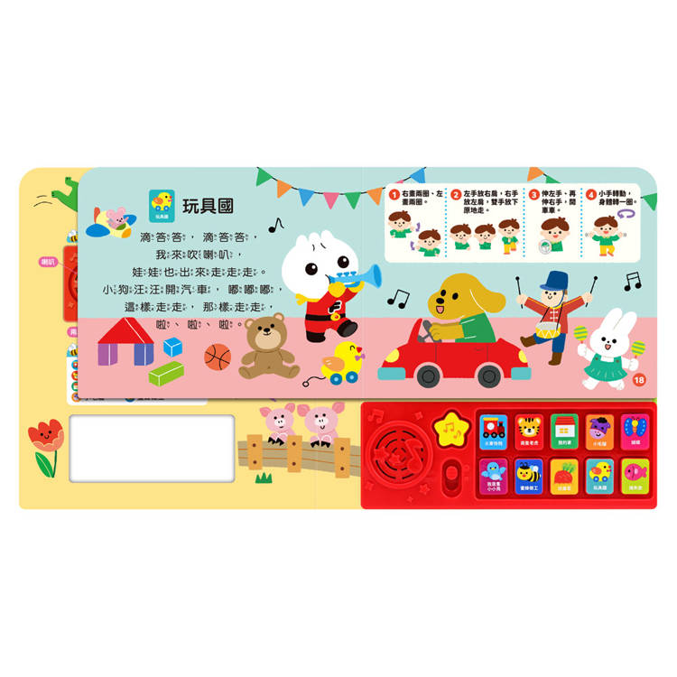 小手輕輕按,即可聽到可愛又童趣的歌謠與音樂伴奏,刺激聽覺發展。