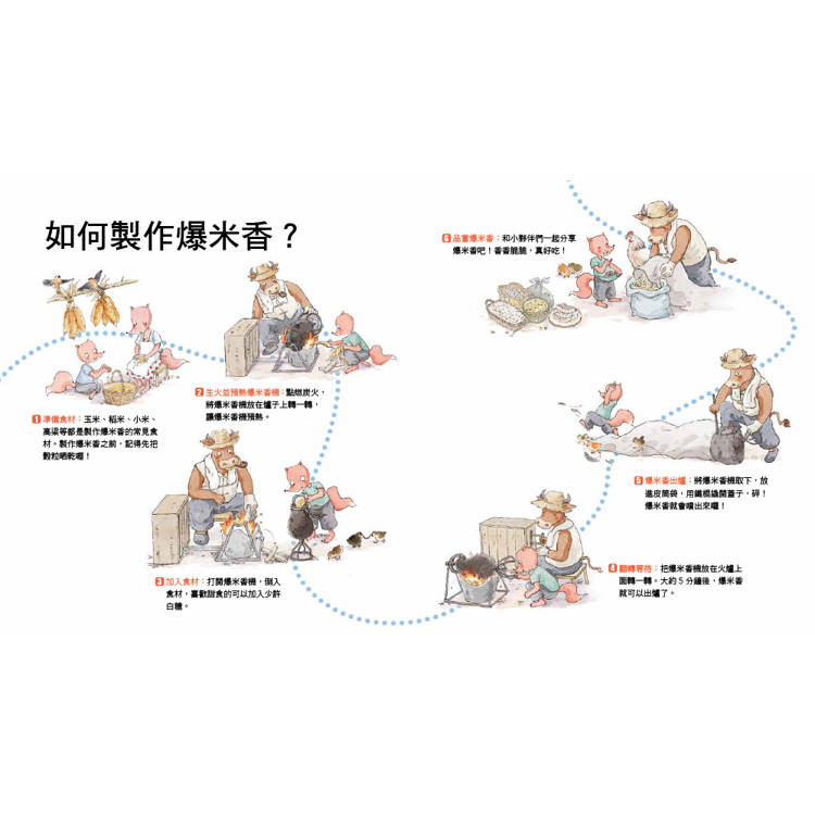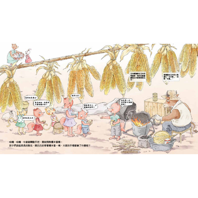 最後的步驟說明圖,讓你在讀完這本書後,可以與家人一起動手試試看,如何爆出香噴噴的爆米花。讓你不僅會吃也認得這個食物,還能知道做爆米香一道道的製作順序。