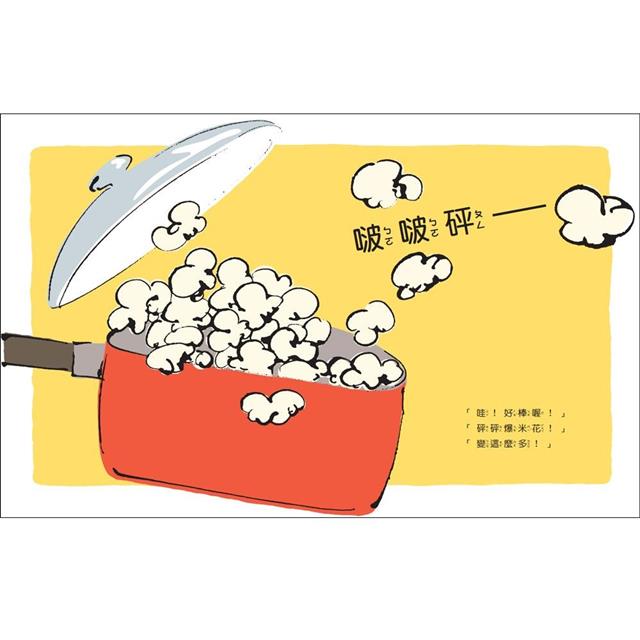 為什麼小小玉米粒會爆開成60倍大的爆米花?為什麼每顆爆米花的樣子都不一樣?鼓勵孩子天馬行空說說書中形狀五花八門的爆米花到底像什麼?小女孩帶走爆米花植物後會發生什麼事?