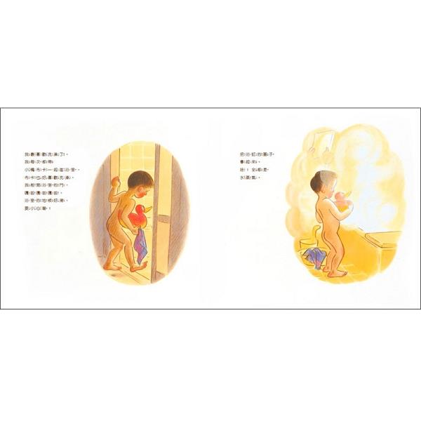隨著故事線,孩子會發現洗澡與泡澡的步驟,還要先試試水溫免得被熱水燙到。