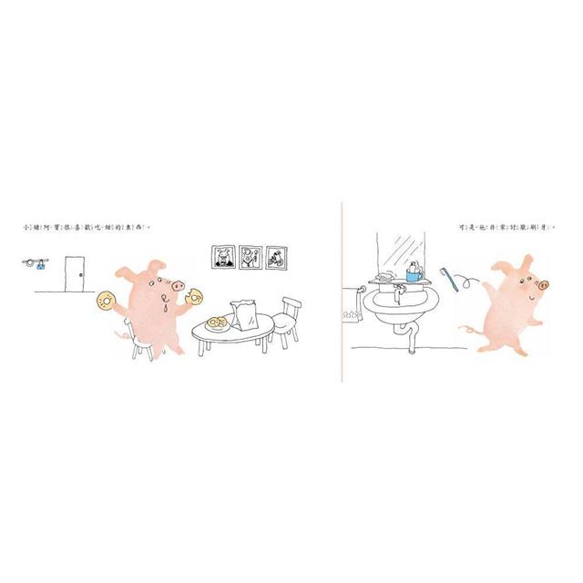 在《我愛牙齒,牙不痛!》裡,小豬在掙扎過後,決定乖乖去找牙醫治療,只是半路上,他竟然遇見大野狼!大野狼與小豬的體型形成強烈對比,當大野狼一步步逼近,即將要小豬好像即將被吃掉!