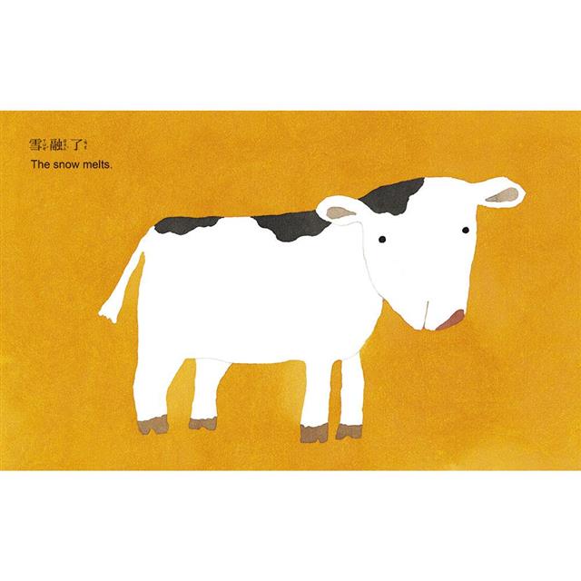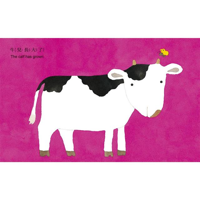 五味太郎運用鏡頭縮放,將圖畫中的小牛巧妙地放大、再放大,