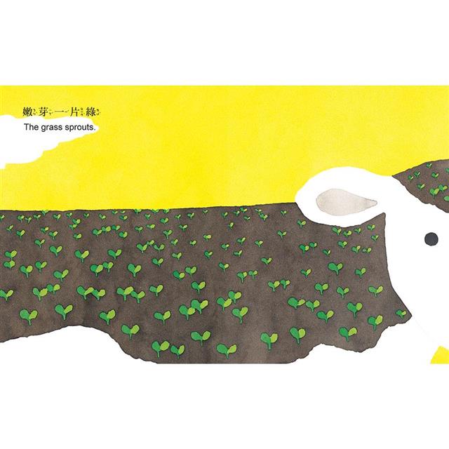 小牛背上變成一片欣欣向榮的土地,冒出嫩芽、開出小花,