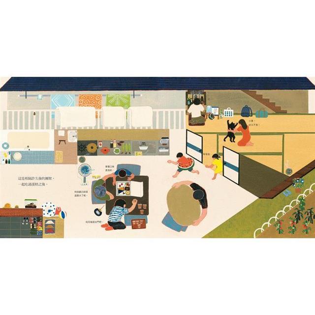 日本知名繪本創作者&藝術家.麻生知子,延續前作《暖被桌》的冬日跨年團圓之後,這次場景換到了盛夏時分。故事講述小男孩.康太因為姑姑和表弟妹一家人在暑假某天來訪過夜的夏日生活。書中滿溢種種日本夏天代表性的元素,例如:游泳池戲水、品嘗素麵、在午後享用香甜的西瓜,與最具代表性的廟會祭典市集、煙火大會活動。