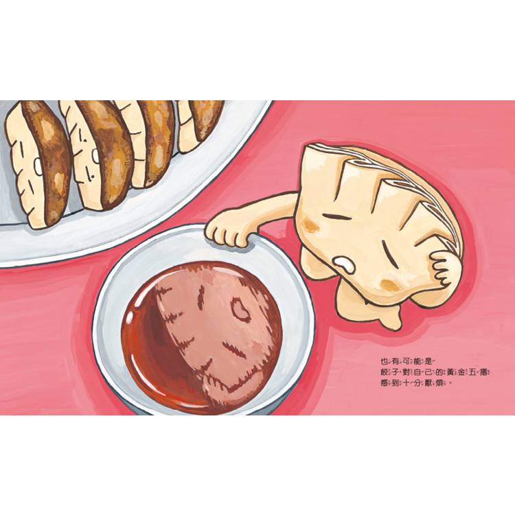 看著餃子經歷種種宛如動作片電影明星的場景,甚至遇上了生死攸關的緊急時刻……餃子憑藉妙絕的創意拯救了自己,這顆充滿勇氣與機智的餃子太激勵人心了,請一定要親手翻閱這部繪本,看看這顆不平凡餃子的冒險歷程!