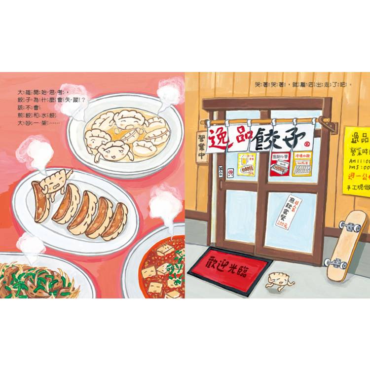 餃子失蹤了?怎麼可能有這種事?正在吃點心的大雄開始猜想N種劇本……失蹤的餃子到哪裡去了?該不會煎餃和水餃大吵一架,負氣離開了吧?或許是想家了,就搭上新幹線返鄉吧?也有可能想要轉換職涯,或是換個造型開啟第二餃生!或者是……大雄天馬行空的想像,完全停不下來!讀者也就這樣跟著餃子展開了一個場景又下一個場景的大冒險。