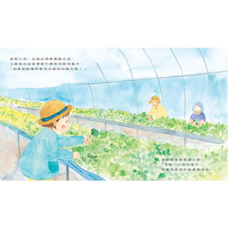 小葵也很喜歡到草莓園裡幫忙爺爺栽種草莓。