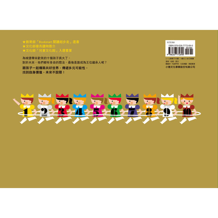 《國王的孩子們》延續《小小國王》中大大皇后和小小國王的美滿婚姻與幸福家庭,邀請小讀者一起關心十個公主、王子們在成長中追尋自我的歷程,選擇誰是治理國家最適合的人選!亮麗的色彩與幾何拼貼的設計充滿歡愉的氣氛及藝術美感,細節的刻畫吸引孩子進行尋寶及關係配對遊戲。故事強調自我實現、去角色刻板印象及團隊合作的精神令人振奮,閱讀時可以和孩子討論,發現自我的長處,以及聊聊對未來職業的夢想。